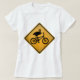 Warning sign showing silhouette of a flamingo riding a bicycle