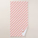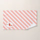 Fashion towel set with beautiful flamingo with diagonal coral and white stripes on the background. Image is monocycle.