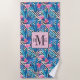 Flamingo & Palms on Geometric Pattern Beach Towel