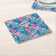 Flamingo & Palms on Geometric Pattern Square Paper Coaster