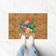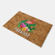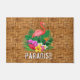 A pink flamingo, tropical flowers and leaves with the word PARADISE or any other wording you choose on a woven wicker print pattern makes a stylish summer theme doormat. (Not actual wicker, it is an illustration printed in full colour.) MATCHING items in our store.