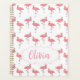 Pink flamingos pattern custom name spiral bound planner notebooks perfect for school or office use. Flamingo lovers of all ages will adore this classic tropical birds pattern planner for back to school, as a birthday gift, or just to express how much they love flamingos! Grown up kids will love them to bring some cute colour into their daily work life or at the office.