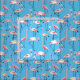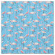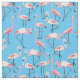 Beautiful illustrated pattern of pink flamingoes, on a bright summer blue background.