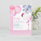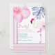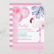 Flamingo Pink & White Stripes Birthday Party Invitation