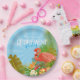 Flamingo Retirement Blue Paper Plate