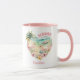Girly coffee mug with tropical beachy heart and flamingos in pink and soft summer colours with retro vibes. Easily personalise the text. - Kate Eden Art