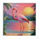 Pink flamingo Bird on a tropical beach with the sea an a sunset in the background
