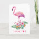Send a sweet thank you with this tropical flamingo baby shower card! Featuring a watercolor pink flamingo standing on vibrant florals and greenery, this card is perfect for expressing gratitude after a summer, luau, or tropical-themed celebration. Personalise the inside with your custom message. Coordinates with the full Flamingo Baby Shower Collection.