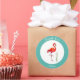 Flamingo Thank You on Light Blue & White Classic Round Sticker