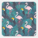 Flamingo, toucan: tropical leaf pattern square sticker