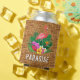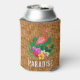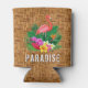 An exotic pink flamingo, tropical flowers and leaves on woven wicker print pattern with the word PARADISE, this design makes stylish summer themed can coolers. MATCHING items in our store.