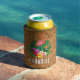 Flamingo Tropical Flowers on Wicker Print Can Cooler