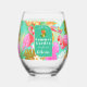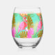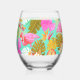 Flamingo Tropical Garden Teal Stemless Wine Glass