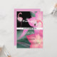 Two beautiful pink flamingo birds draped in white and pink roses are set against a tropical floral pink, green and black background that has white and black custom fonts for your personalised wording. This chic and stylish design is ideal for a "pink and black themed" or "flamingo themed" bridal shower; birthday party or even a business event.