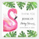 Flamingo Tropical Leaves Baby Shower Party Favour Square Sticker