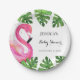 Flamingo Tropical Leaves Baby Shower Party Paper Plate
