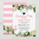 Flamingo Tropical Leaves Floral Graduation Party Invitation