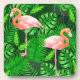 Watercolor pattern design with flamingo birds and tropical leaves.