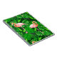 Watercolor pattern design with flamingo birds and tropical leaves.