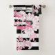Flamingo Vibes Only Black & White Stripe Flamingo Bath Towel Set