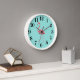 This round shape wall clock is shown with a cute pink flamingo art print.