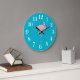 Clock is shown in a solid color of turquoise with a cute flamingo.
