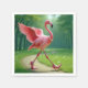 A flamboyant flamingo, adorned with a pearl necklace and pink high heels, strides confidently along a winding path in a lush, green park