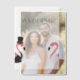 A wedding invitation with a flamingo theme. This invitation features a flamingo bride and flamingo groom. Simply add your information and get this invitation today.