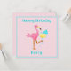 Pink Flamingo with Cocktail on a Pink background Birthday Card. Designed by Jacqueline. Personalised by You. All aspects of the designed can be edited to suit. If you need help with this just drop me a message.