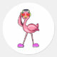 Flamingo with Headphone & Hearts Classic Round Sticker