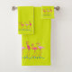 Flamingos and Sea Stars Bright Chartreuse Bath Towel Set
