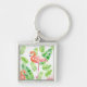 Flamingos and tropical leaves key ring