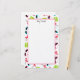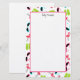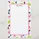 Stationery paper featuring a pattern of pink flamingos, green flip flops, and cat eye sunglasses in pink and blue. Personalise with your name at top.