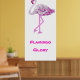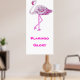 Mosaic, graphic drawing, of a Tropical, Flamingo bird, displayed in exotic, Abstract patterns-in colors of, bright-pink, violet, fuschia, dark-brown, and black, against dark-gray, background.