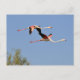 Flamingos in flight holiday postcard