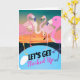 Let’s Get Flocked Up, paper invitation greeting card with flamingos around a water hole with a sunset sky. Customise text on the cover and inside the card with your party event information. Art. Image, and verse copyright © Shoaff Ballanger Studios, 2022.