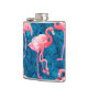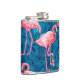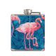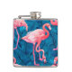 Flamingos on blue banana leaves hip flask