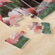 Game puzzle shown with a photo print of beautiful pink flamingo birds. Customise this item or buy as is. Stock Image