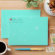 Tropical Christmas envelopes decorated with pink flamingos. Pretty turquoise coloured felt paper has twinkling stars background. Add a return address on the front using the text template. Inside, under the flap four big flamingos stand with holiday wreaths around their necks.
