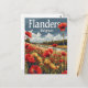 A poignant and nostalgic depiction of Flanders, Belgium, highlighting its iconic poppy fields, which symbolise remembrance of World War I. The design captures the serene beauty of vibrant red poppies stretching across rolling fields under a soft, blue sky. Rendered in a vintage style, the artwork evokes the tranquil and reflective atmosphere of Flanders, inviting viewers to appreciate its historical significance and natural charm.
