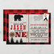 Flannel Little Bear Wild One 1st Birthday Invitation