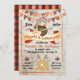Flapjacks and Lumberjacks breakfast birthday party invitations. Features banners, flannel, bear paw prints, pancakes, axes, and a burly lumberjack on a birch wood background. Great for a sleepover slumber party!