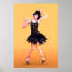 Step into the roaring 1920s with this vintage design featuring a glamourous woman in a black flapper dress, dancing in the spotlight against a bold orange background. Inspired by the elegance, fashion, and energy of the twenties, this retro art captures the great spirit of the Jazz Age. A perfect idea for dance lovers, parties, birthdays, or anyone who adores 1920s deco style. Celebrate the past with timeless charm!