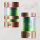 Make a lasting impression with this elegant and quality business card template featuring an eye catching rose gold box with glass and teal green fluids optics.
