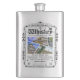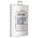 The product is a good size and came exactly as it was pictured. The lid is not attached to the flask, which could be dangerous on drunken nights... The print came out surprisingly well and looks very sharp. Would definitely recommend.
