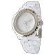 Beautiful ladies' Flat Earth Grid Map with Hour Markers and Rhinestone Silver & Crystal Antarctica Ice Ring Bezel. Available in Black or White 'Ceramic' Enamel Link Watch Band.