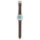 I was uncertain about the size being too small but it looks good. The case looks like aluminum (not shiny) and the time is easy to see. I changed the band because the leather doesn't go with my lifestyle.a. Exactly what I expected, nice yellow. It grabs peoples attention.