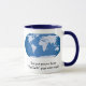 Mug with blue world map with the words "This just proves those Flat Earth guys were right!" will make your co-workers do a double take!