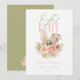 Beautiful and elegant Easter brunch and egg hunt invitation. The design features cute bunny ears with pink flowers and green leaves. The background is white. The back side is solid matching lime green with a little bouquet of Easter eggs. Personalise it for your needs.