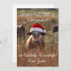 This beautifully captured photo features a sweet brown-and-white cow wearing a cozy Santa hat, standing in a warm, golden field — the perfect blend of rustic country life and holiday cheer. Whether you're sending season’s greetings to friends, family, or fellow farm lovers, this card delivers a unique and heartwarming touch they won’t forget.